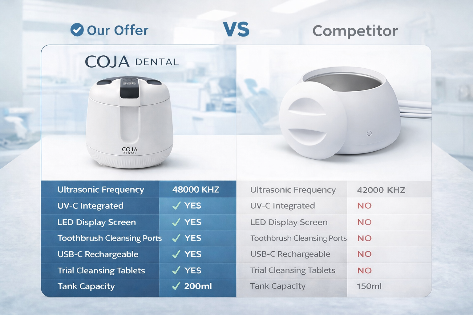 Our dissolvable cleansing pods deliver powerful, deep-cleaning action in seconds. Just drop one in water, place your appliance, and let Coja do the work—no scrubbing, no hassle, just fresh results.